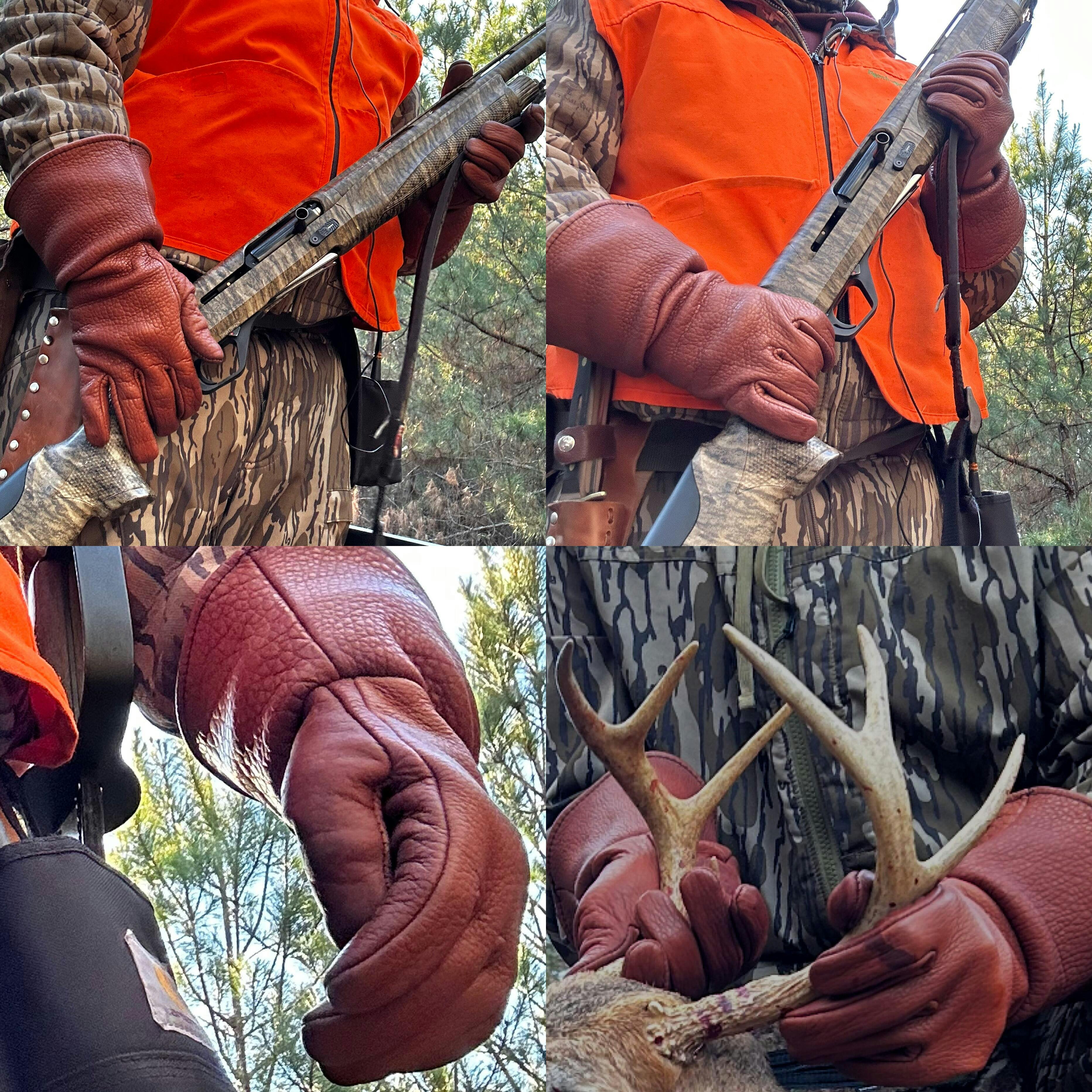Heavy duty 4-5oz American buffalo leather. Buffalo has a very textured grain that takes several uses to break in, but is worth the time for a hard wearing glove. Buffalo leather offers our highest abrasion resistance glove and forms to your hand as you break it in with limited stretch. All purchases are cut and hand sewn to order. Please allow two weeks for product to ship! All leathers come from natural hides which may contain scarring, giving each pair its own character.